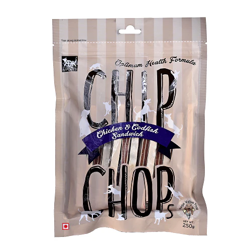 Our Chip Chops Chicken and Codfish Sandwich is crafted with wholesome, real chicken and codfish, ensuring your furry friend only receives the best. This treat pack boasts a fresh and healthy approach. Key Benefits: