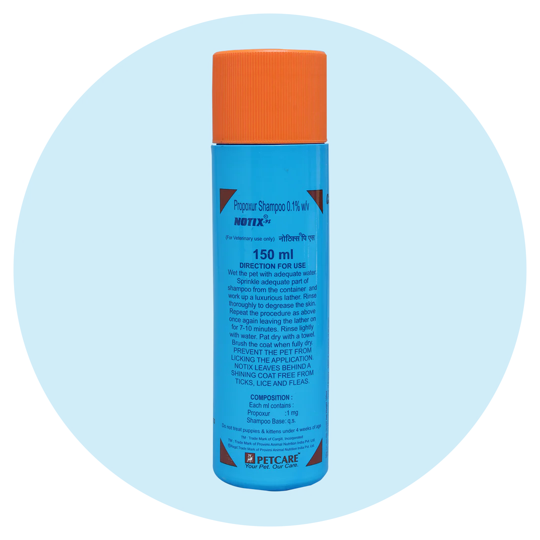 Petcare Notix propoxur Shampoo for dogs 150ml is an excellent product to prevent ticks and fleas from your pet. The shampoo does not contain any chemicals or harmful substances but still prevents any parasites from infesting your pet’s body. This shampoo allows you to provide regular care and of your pet’s coat. It also helps to maintain good health and hygiene for your pet. Fleas and ticks can at times give rise to harmful diseases in your pet. Remember to treat them at an early stage.